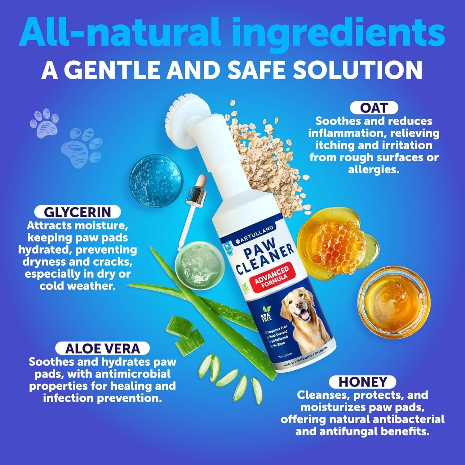 Clean & Soft Paws: The Artullano dog paw cleaner is a vital addition to your dog cleaning supplies. It not only cleans but also moisturizes and deodorizes your pet's paws, leaving them soft and clean without the use of fragrance