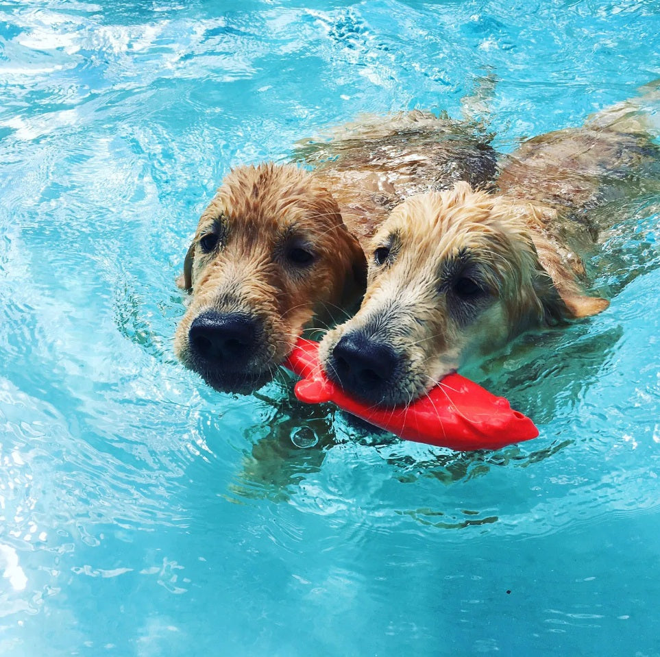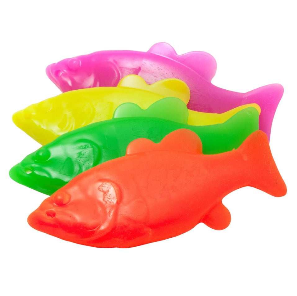 Fish are a great catch – in or out of water. These adorable fish are pleasantly scented and come in a variety of bright and neon colors. A handy hole lets you string them on a rope for added throwing distance or tugging play. Fish make great pool toys, and cute photo props!