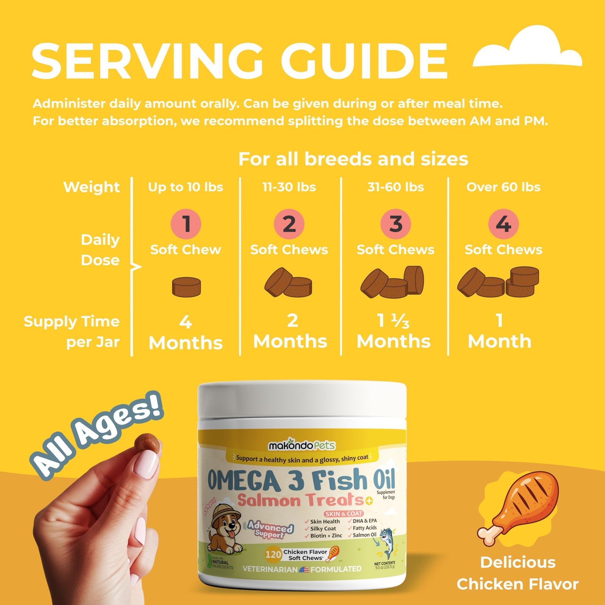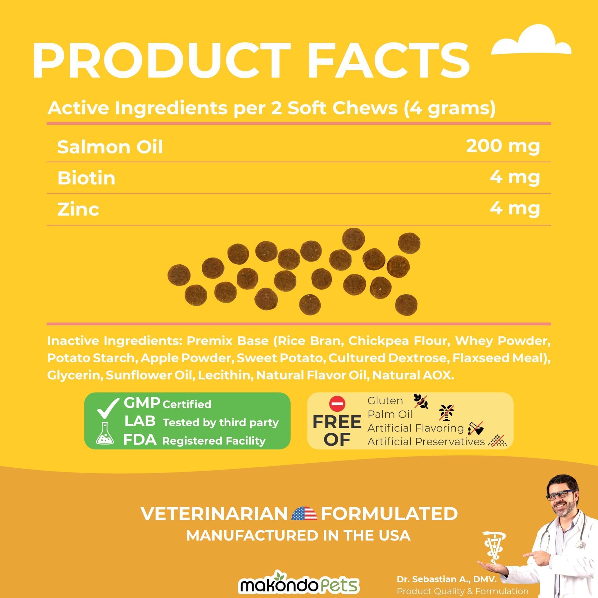 MAKONDO PETS a brand you can trust Vet Dr formulated Chicken Flavor Chews made in FDA-registered facilities in the USA. Mix it with the animal food. No hassle with pills, powder, tablet or capsules.
