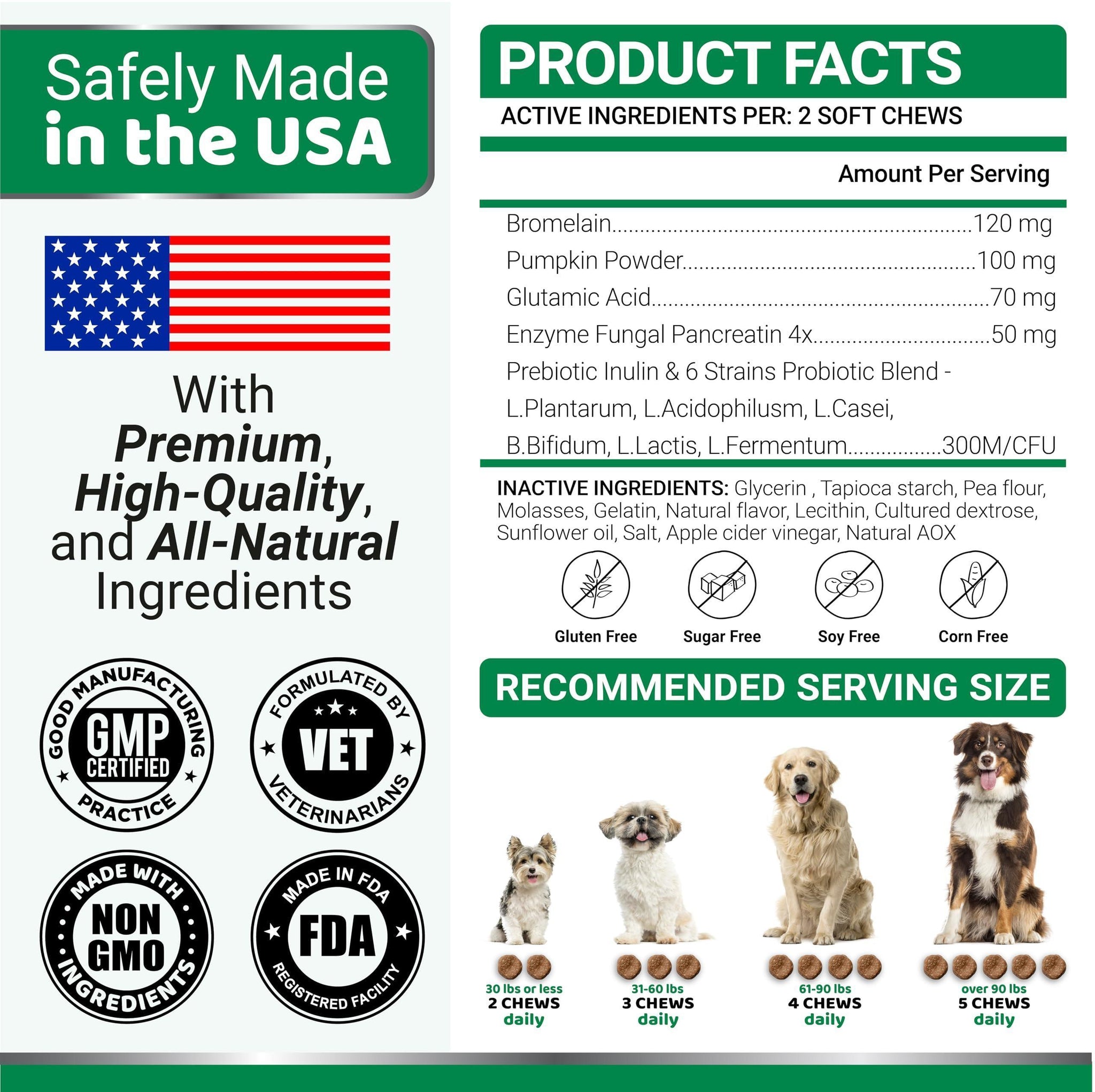 Supports Digestive Health: Packed with digestive enzymes and probiotics, our stool eating deterrent for dogs not only deter stool eating but also promote a healthy gut, improving nutrient absorption.