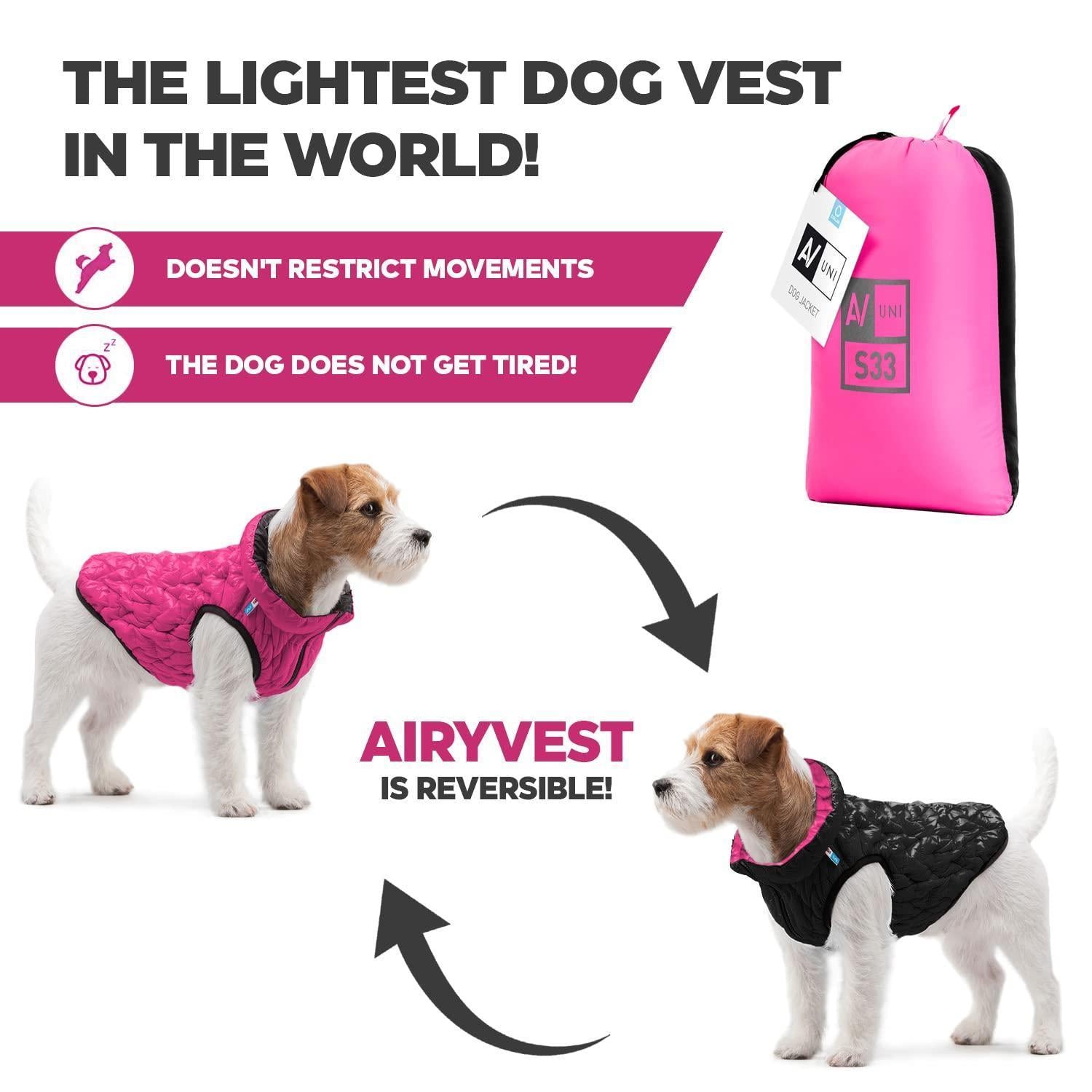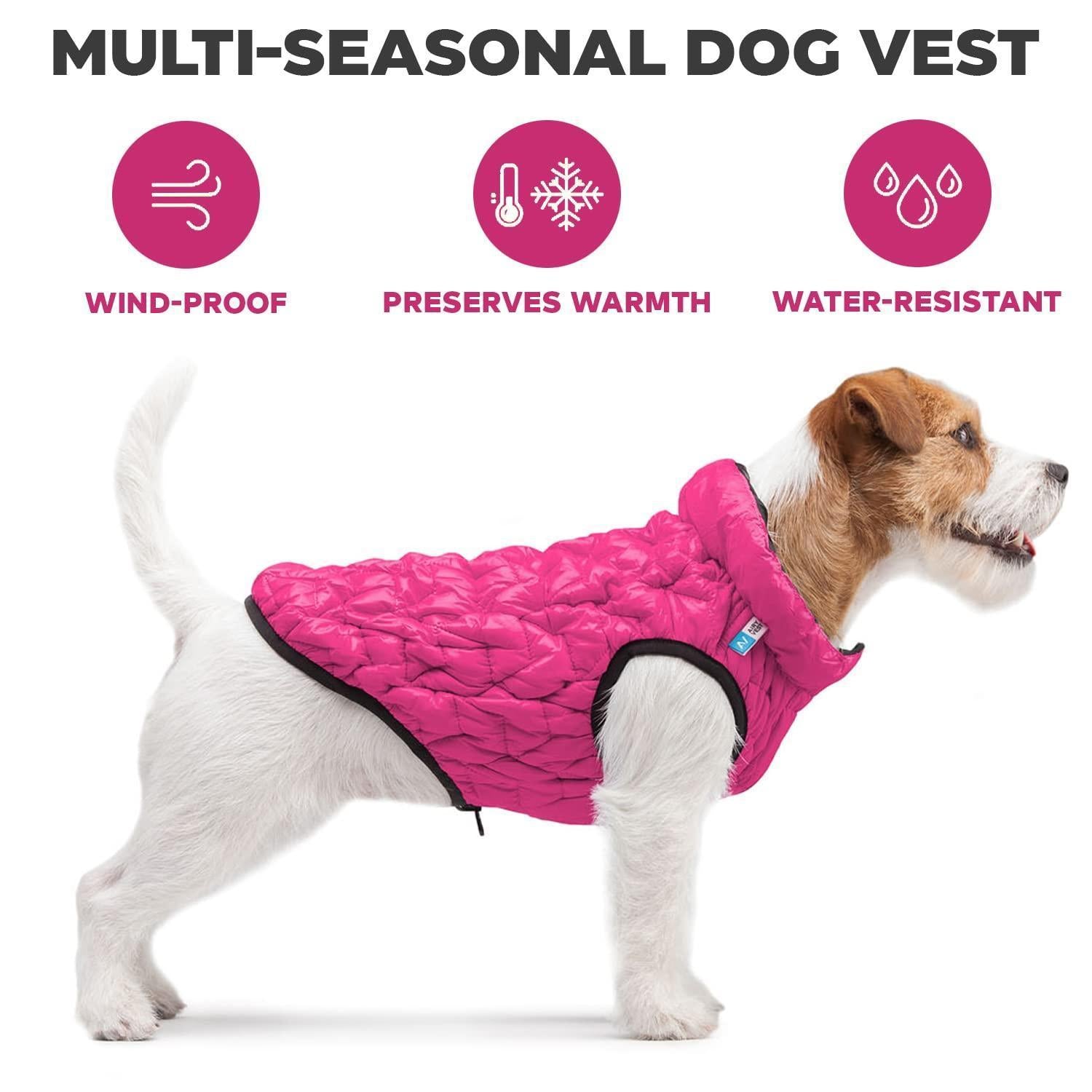 LIGHTEST JACKET IN THE WORLD - Crafted from nylon fabric with a DWR coating and filled with 1.20 oz of polyester fiber, this insulated dog jacket resists wind and shed water for hours on end without restricting movement or feeling bulky.