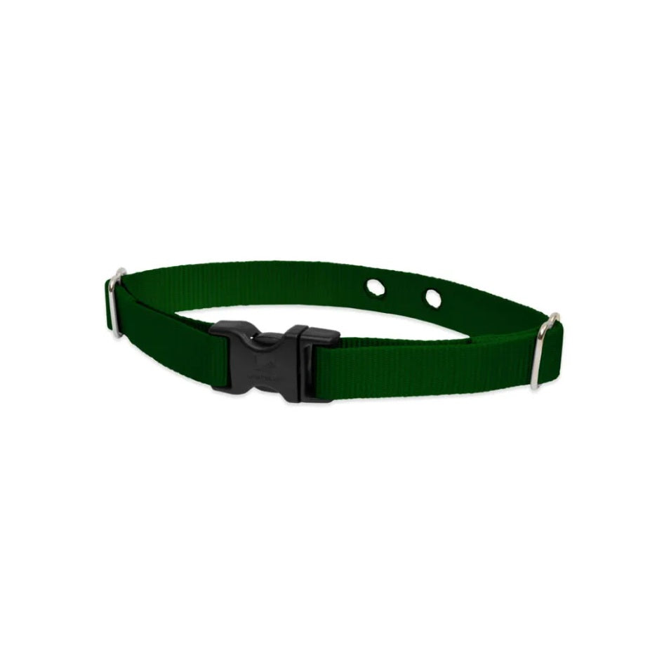 The Underground Fence Collars are compatible with DogWatch, Invisible Fence Brand, and PetSafe receivers. LupinePet Underground Fence Collars have two heat-sealed holes, a hole spacing of 1.25 inches and hole diameter of 3/8 inches. These collars do not have a D-ring and are not intended for leash-walking. Lupine Pet partnered with YKK, the leading buckle manufacturer, to design the optimum quality, strongest plastic buckle on the market. Designed specifically with dogs in mind and featuring an easy, convenient side release.