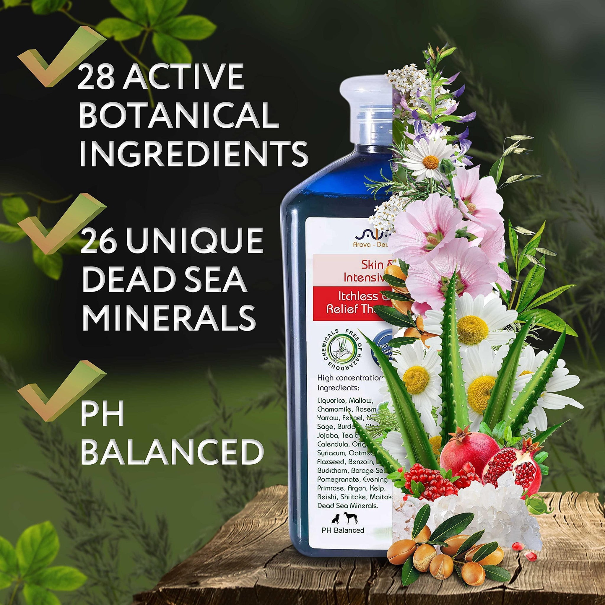 - Dead Sea Minerals – Formulated with premium Dead Sea minerals, Arava Therapeutic shampoo is perfect for corrective skin problems and irritations. Contains 28 natural ingredients.