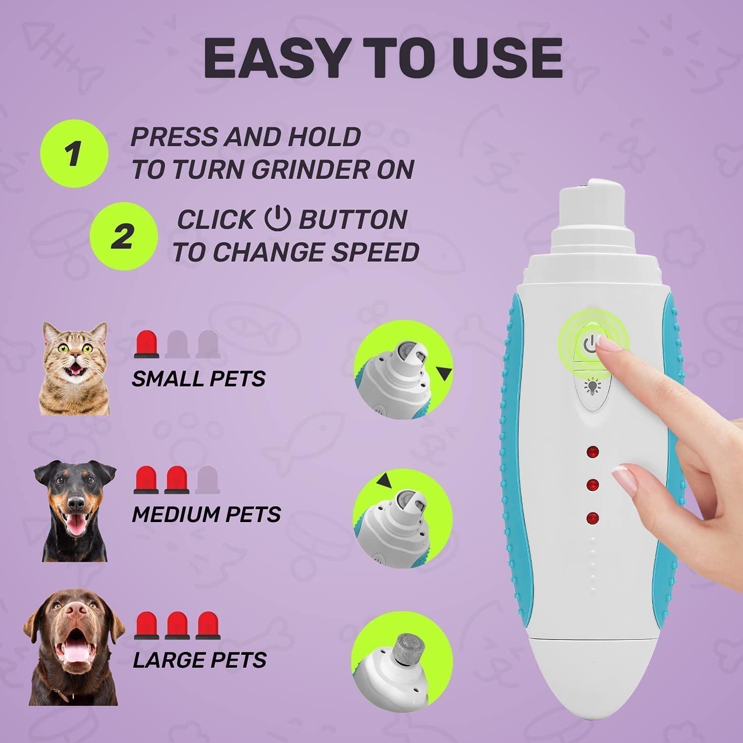 3-SPEED & GRINDING WINDOWS: Made for small, medium, and large-sized dogs. This cat nail trimmer feature 3 rotation speeds and grinding windows that allows you to get the appropriate speed and size according to your pet's size and nail hardness. Also, cat nail grinder may be applied to rabbits and cats which offers an effective way to keep your pet's nails neat and tidy. Nail grinder for dogs reduces the risk of clipping too short or injuring you pet-friend.