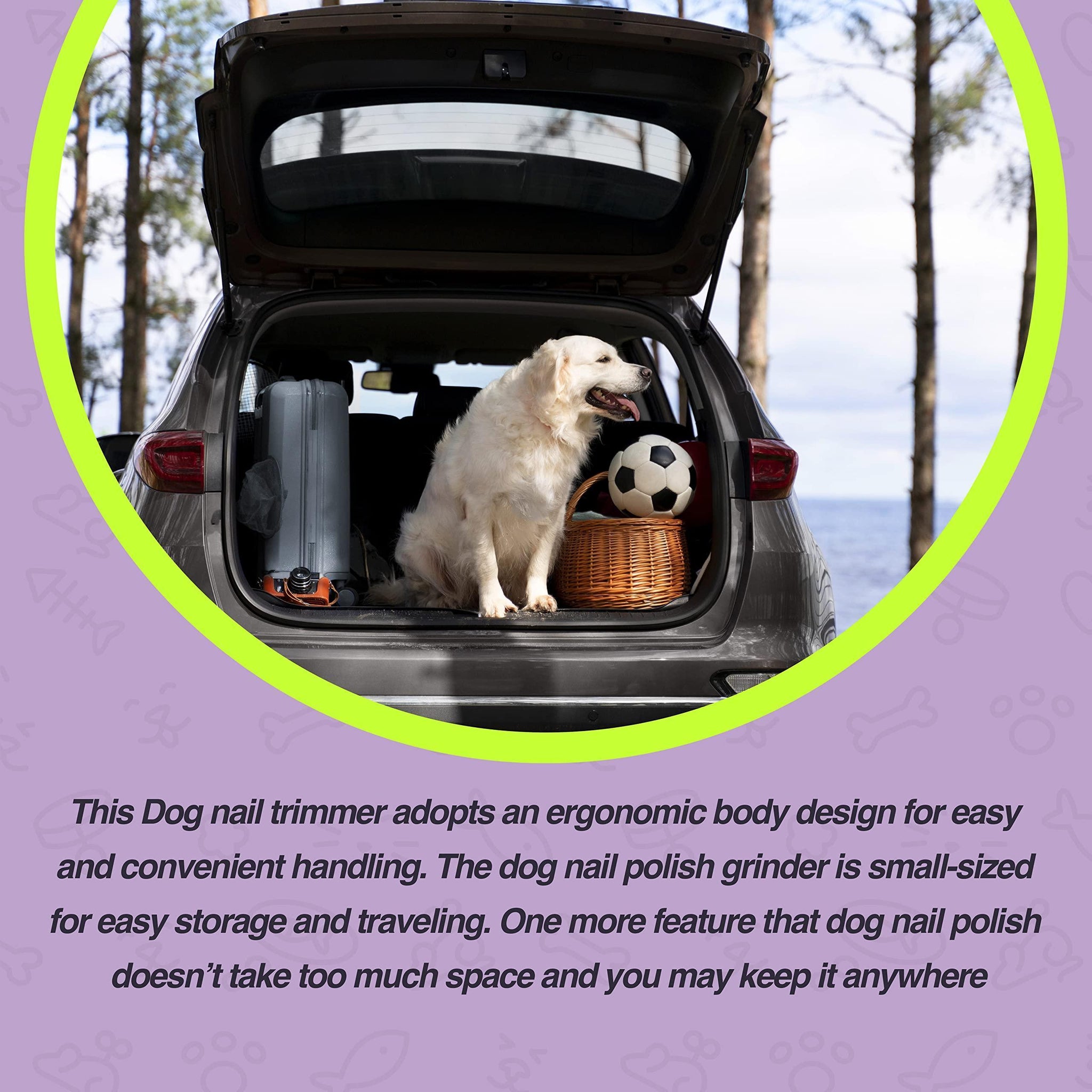 LOW NOISE & VIBRATION: Most pets are scared of sound and vibration! Not this one, equipped with a top-quality motor, this dog nail trimmer for small and big dogs boasts a fast rotation with low vibration which helps ease tension and anxiety for a comfortable and quick pet grinding experience. Dog nail grinder allows you to efficiently and carefully cut any type of claw. With this dog nail clippers you can make your pet's claws round and neat to protect furniture and floor from scratches.