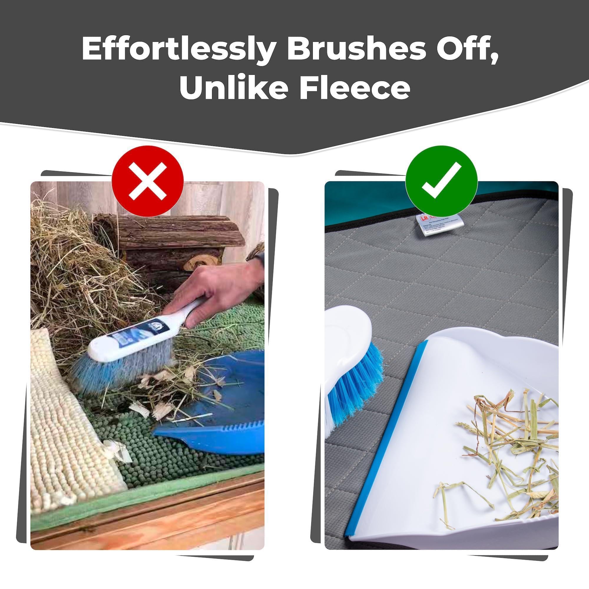 Easier To Clean: Than Fleece Unlike traditional guinea pig fleece cage liners, our mat prevents hay and debris from sticking, making cleanup quicker and hassle-free. Shake off the debris and throw these rabbit cage liners in the washing machine for a spotless mat every time.