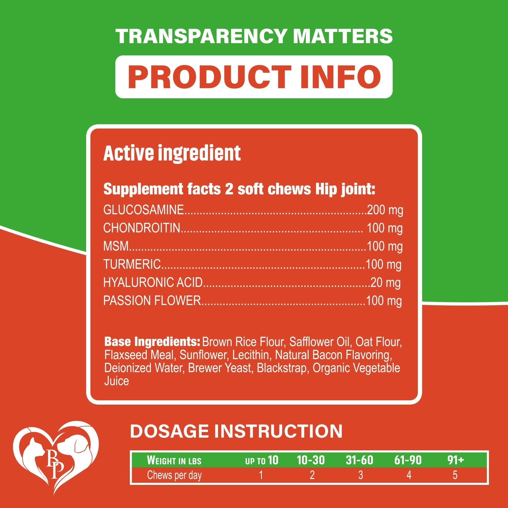 THE BEST HIPS AND JOINTS SUPPLEMENTS: The treats are not only delicious, but also indispensable for the healthy joints of your pet. They restore cartilage, stimulate bone growth, relieve inflammation and provide an overall anti oxidant effect. One bottle lasts up to 3 months.