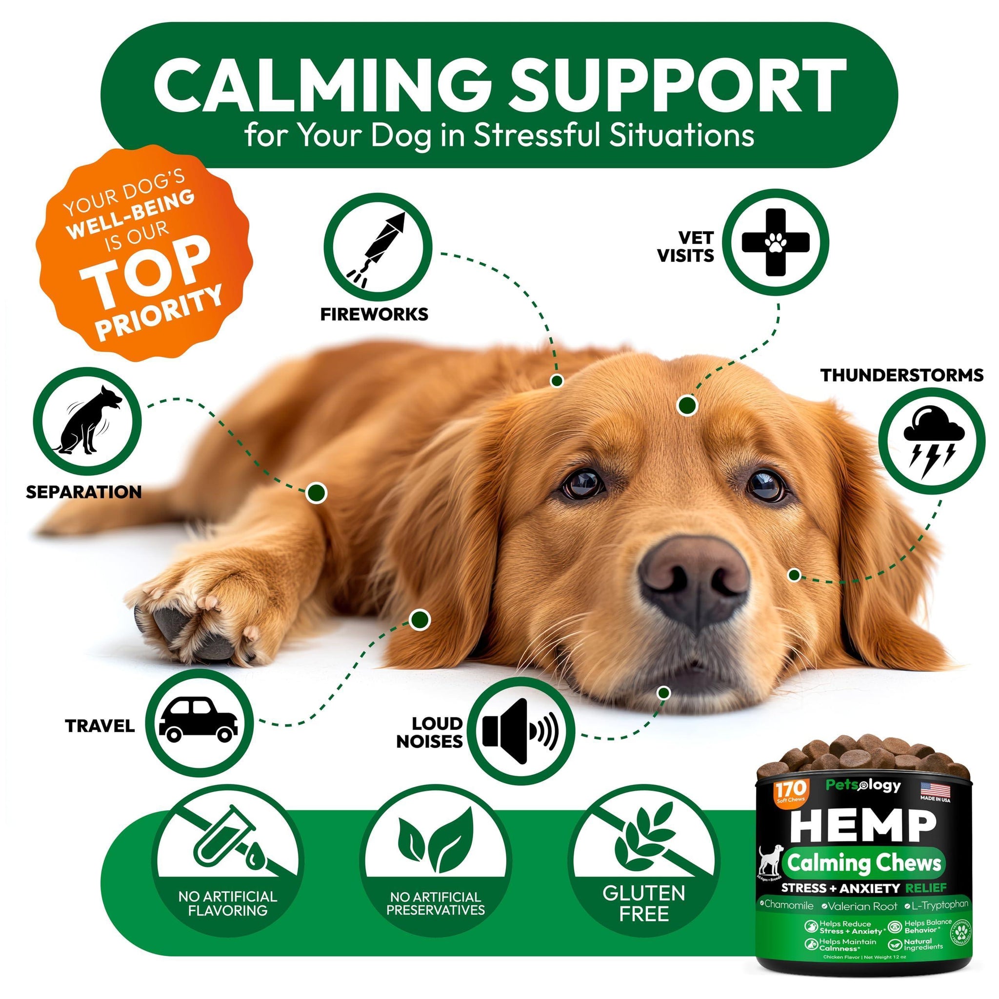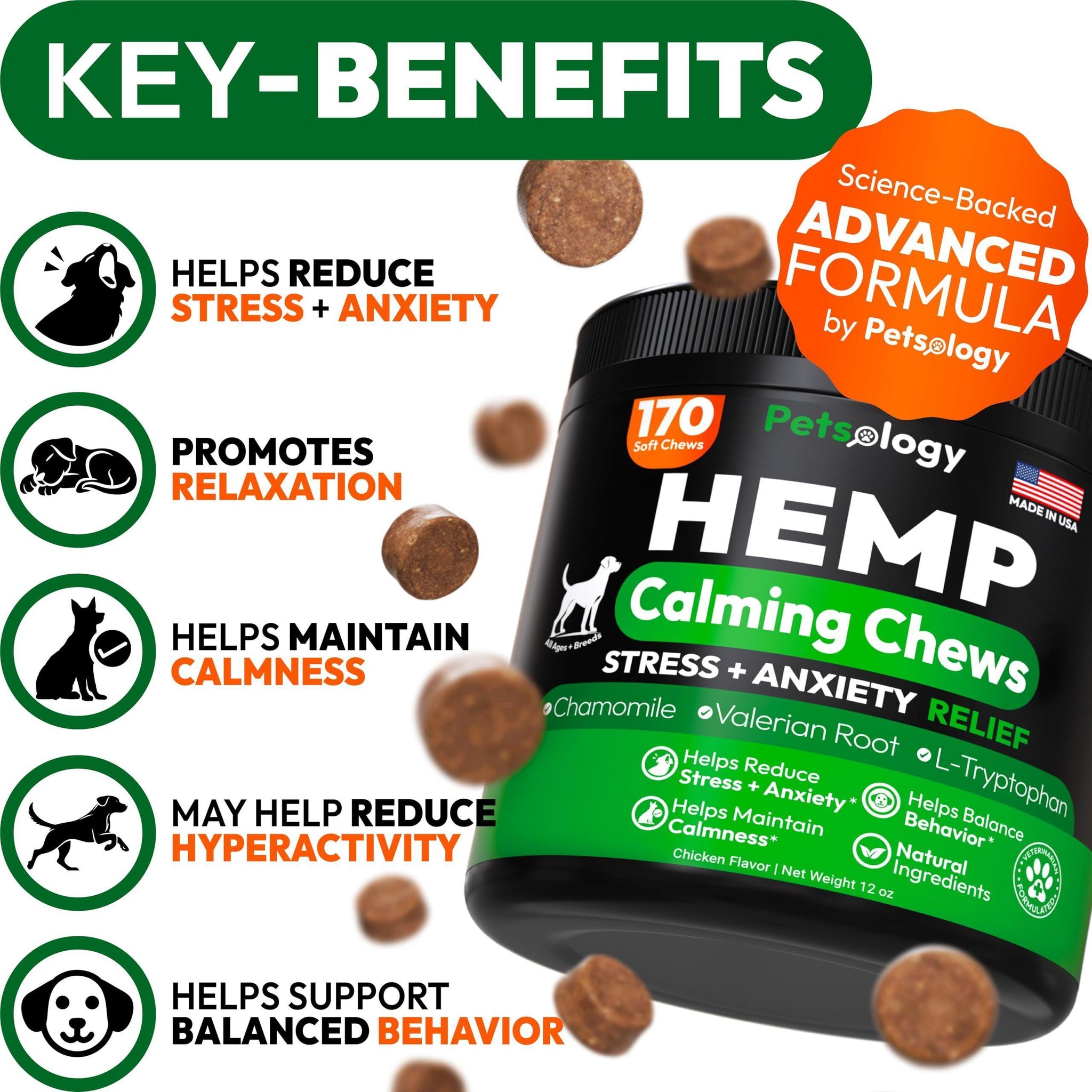Supports Relaxation & Better Sleep: Infused with hemp oil and melatonin, our dog calming chews - anxiety relief treats promote deep relaxation and restful sleep without drowsiness for dogs.