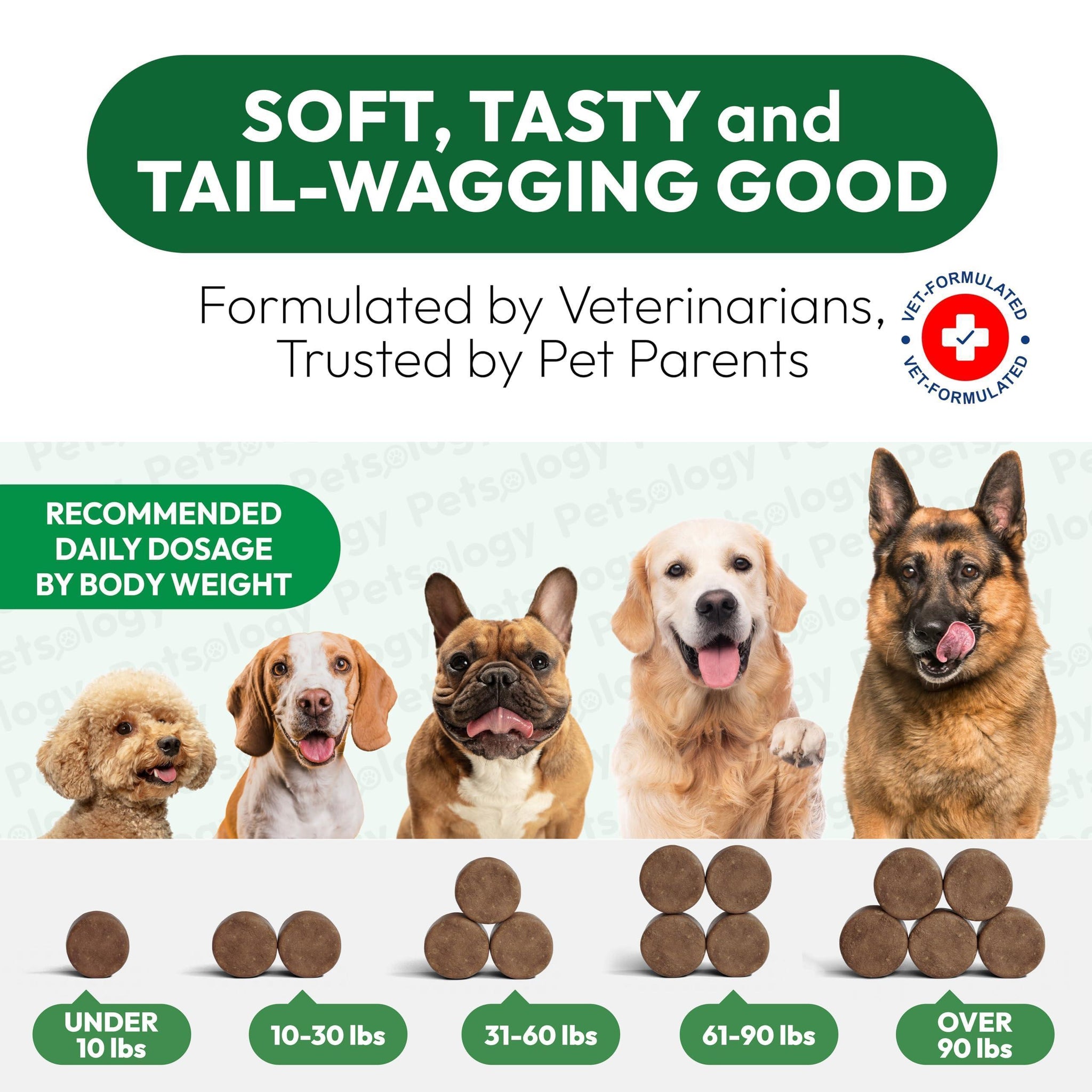 Behavior Support & Mood Balance: These dog anxiety chews help calm hyperactive dogs, reduce aggression, and improve focus for a balanced pup. Ideal for stress from vet visits, grooming, or travel.