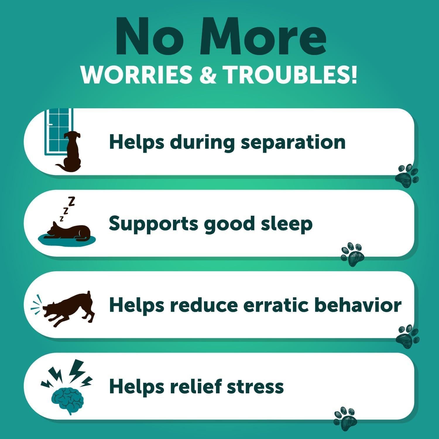 Fast-Acting & Delicious Chews: our calming dog treats help reduce anxiety and stress in about 30-45 minutes so your dog can quickly relax and enjoy every moment. They are also tasty & easy to feed your dog
