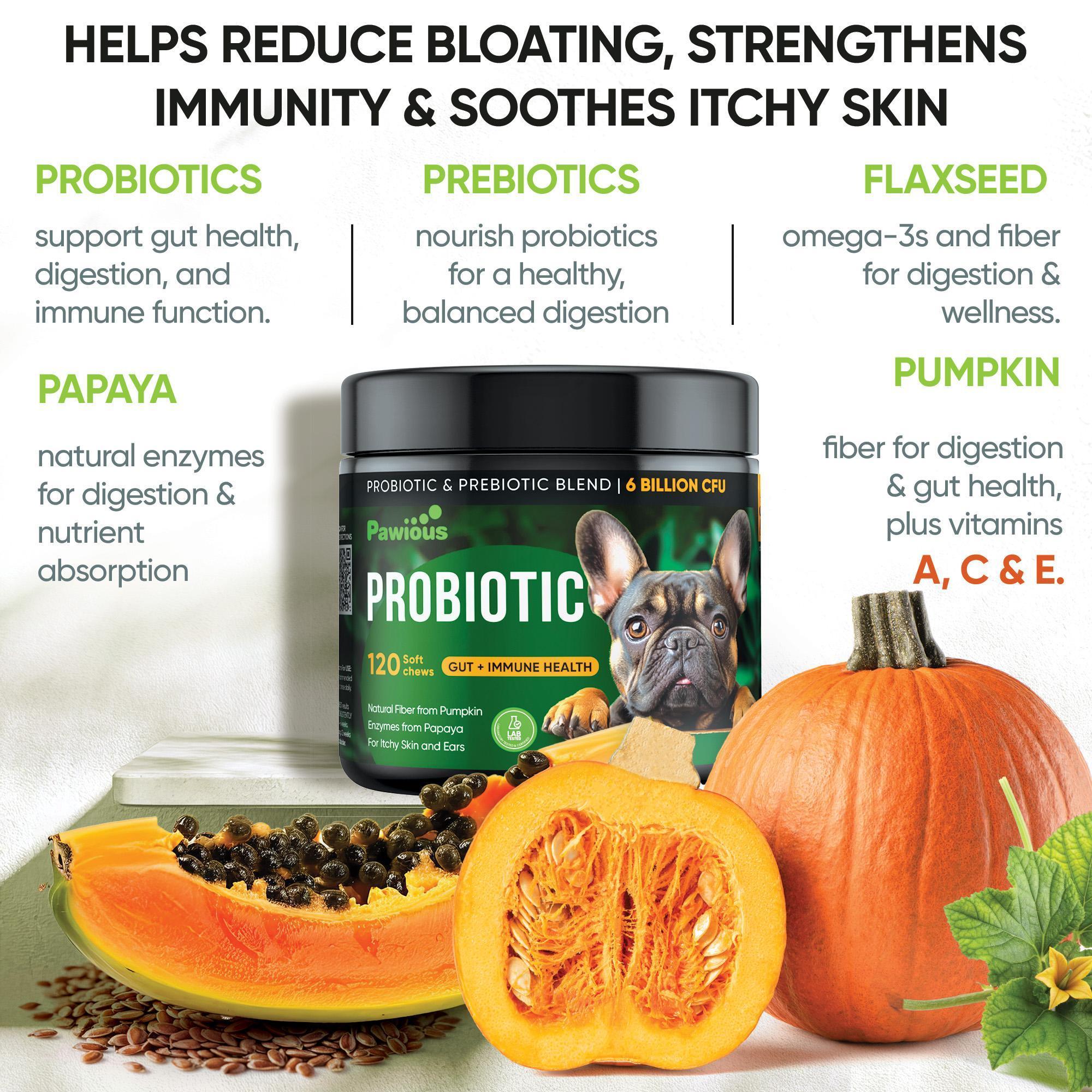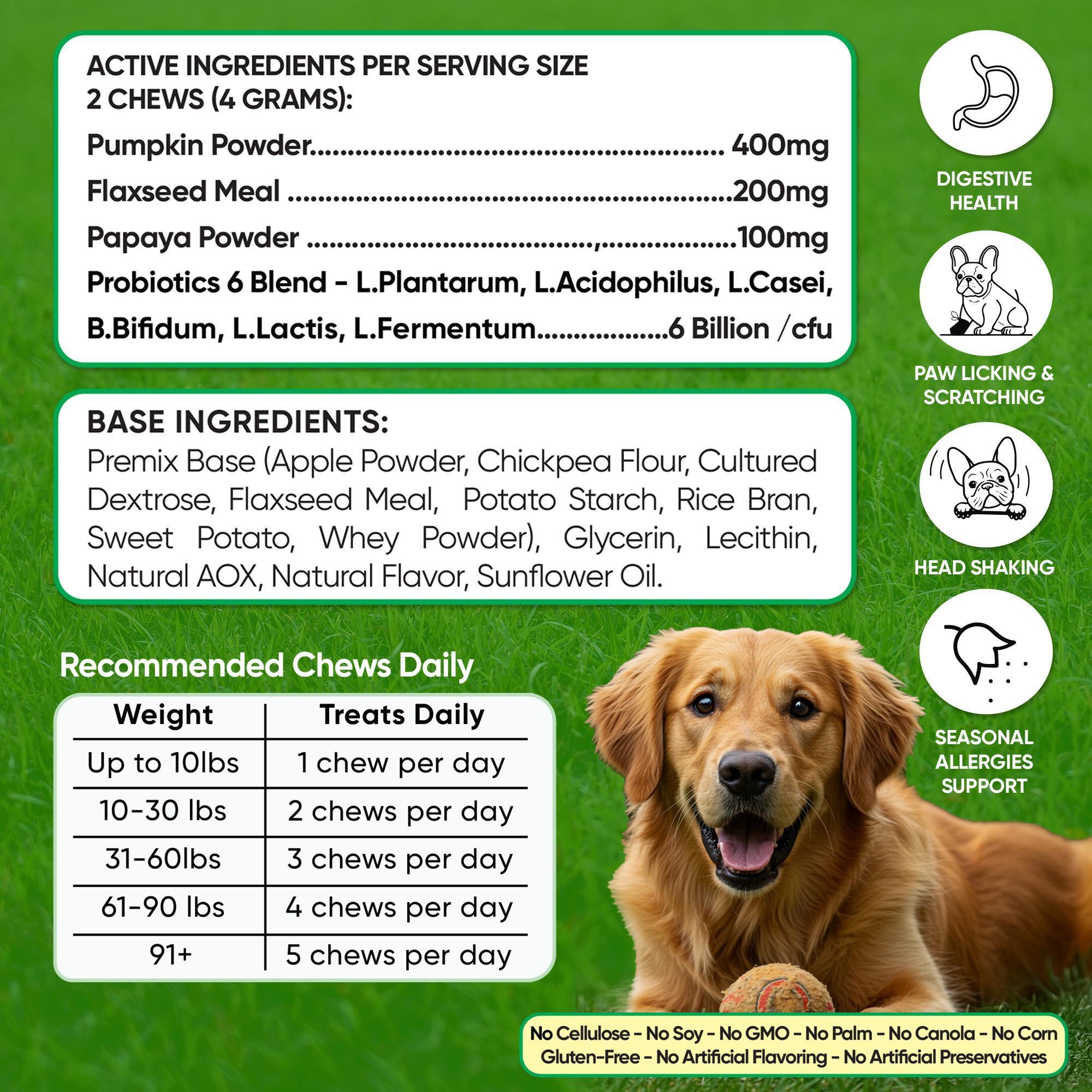 Relief for Itchy Skin, Paw Licking, and Healthy Yeast Levels: With a powerful 6 Probiotic & Prebiotic Blend, these dog probiotic chews support the immune system and relieve seasonal allergies, providing relief for paw licking, itchy skin and itchy ears, and maintaining healthy yeast levels.